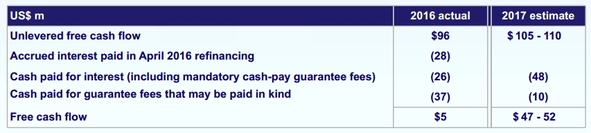 CME - výhled firmy pro cash flow za rok 2017, zdroj: CME