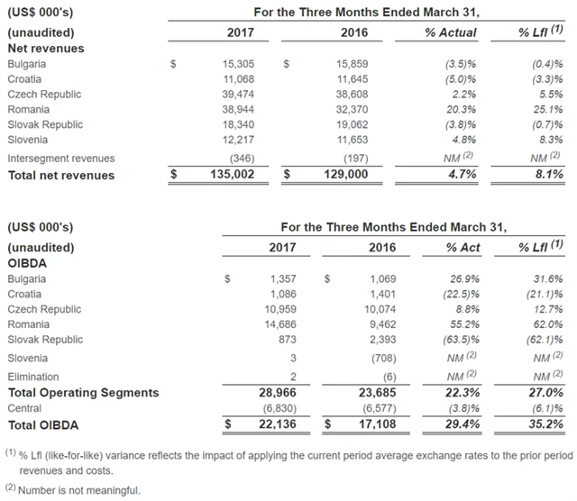 V samotné České republice společnosti tržby v prvním čtvrtletí vzrostly meziročně o 2,2 % na 39,47 milionu USD a zisk OIBDA jí narostl o 8,8 % na 10,96 milionu USD. Při konstantních kurzech měn se čisté tržby na českém trhu zvýšily o 5,5 % a zisk OIBDA stoupl o 12,7 %.