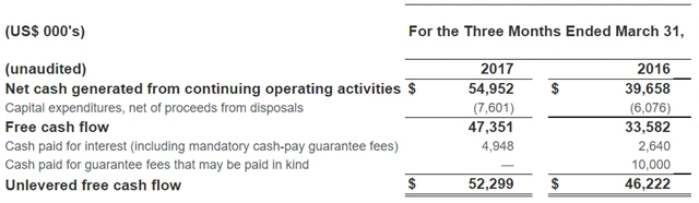 Volné cash flow CME nezatížené úroky a garančními poplatky se za první tři měsíce roku meziročně zvýšilo ze 46,22 milionu USD na 52,3 milionu USD. Na úrocích společnost zaplatila 4,95 milionu USD po 2,64 milionu USD v prvním kvartálu 2016. Garanční poplatky se CME v prvních třech měsících letošního roku netýkaly.
