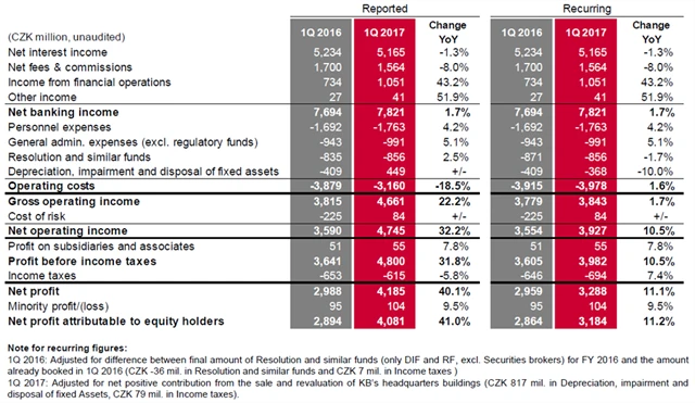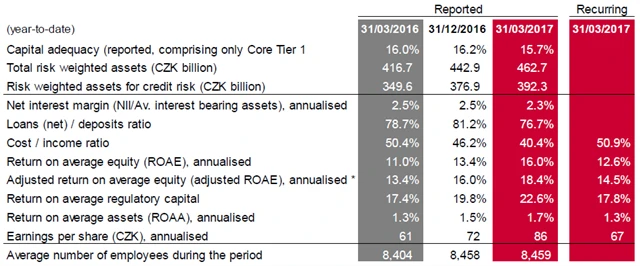 Komerční banka - vybrané provozní ukazatele za 1Q2017