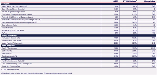 MONETA Money Bank - vybrané ukazatele (k 31. březnu 2017)