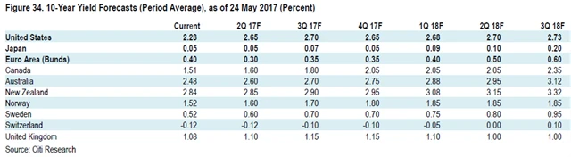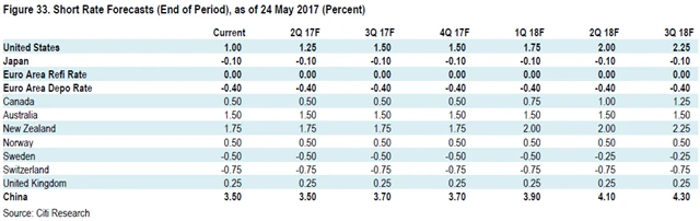Ve Spojeném království průzkumy naznačují, že konzervativci 8. června vyhrají volby, což by mělo posílit pozici premiérky Theresy Mayové při vyjednávání dohody s Evropskou unií. Bank of England naznačuje rychlejší růst úrokových sazeb, než predikujeme, ale rizika spojená s brexitem představují významnou překážku pro zvyšování úroků před rokem 2019.