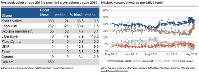 "Cílem předčasných voleb mělo být nastolení stavu, kdy pro konzervativce nebude problém protlačit zákony o brexitu. Nepříznivý výsledek voleb by tak zřejmě kvůli zvýšené politické nejistotě přinesl prudké oslabení libry," říká ekonom z Komerční banky Marek Dřímal.