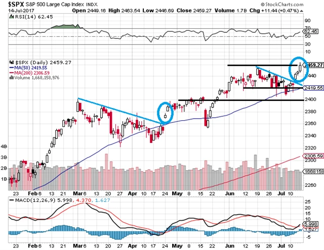 Výhled pro americké akcie je podle technické analýzy i fundamentů býčí. Je otázkou, zda index S&P 500 bude schopen dále výrazně posouvat svá historická maxima, hodnoty nad úrovní 2 400, jež je prozatím nezpochybnitelnou podporou, budou ale stále potvrzovat optimistický výhled. V nejbližší support by se mohla změnit i úroveň 2 450, kde byla donedávna rezistence a historické maximum, pokud se potvrdí páteční proražení nad tuto hladinu. Silně nyní působí i support na 2 420, zesílený navíc 50denním klouzavým průměrem. Trh je na rekordu, rezistenci tedy teprve bude hledat.