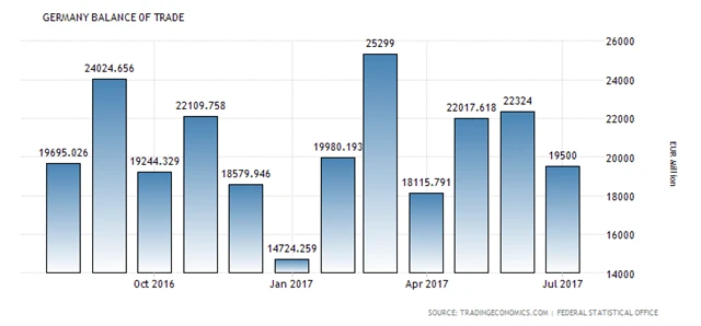 Vývoz se v červenci zvýšil meziměsíčně o 0,2 procenta. Dovoz stoupl o 2,2 procenta. Minulý měsíc dovoz i vývoz klesly. Analytici v anketě agentury Reuters čekali v červenci přebytek až 20,3 miliardy eur. Vývoz se měl podle nich zvýšit o 1,25 procenta a dovoz o 2,8 procenta.