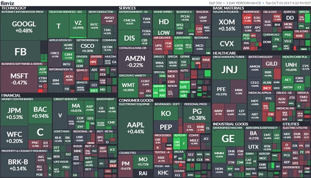 Vzhůru zamířily například akcie společností General Motors (+3,08 %) a Ford Motor (+2,07 %). Obě automobilky vykázaly za září výrazný nárůst prodejů na americkém trhu. Američané v oblastech zasažených hurikány nahrazovali své poškozené automobily novými. Dařilo se například také akciím aerolinek (Delta Air Lines +6,62 %, United Continental +6,14 %).