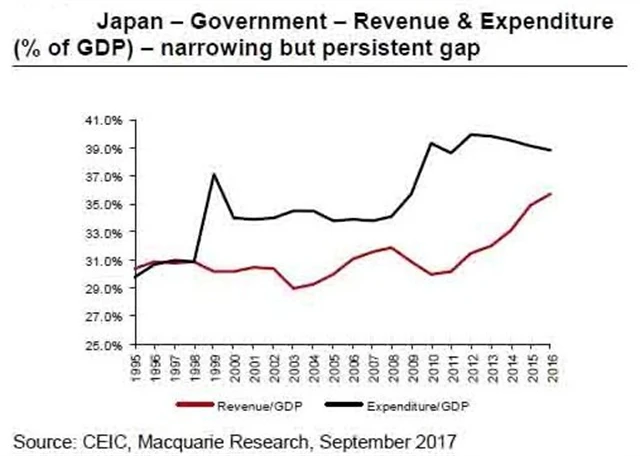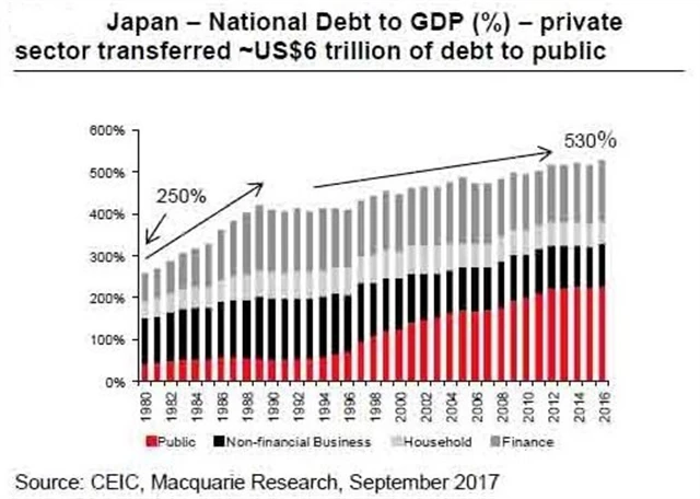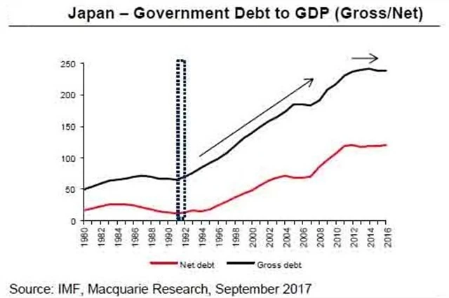 Známý ekonom Paul Krugman řekl, že "rozvinuté ekonomiky se stabilními vládami, které si půjčují ve vlastní měně, jsou schopné bez rizika krize spravovat vysoké úrovně dluhu". Pro Japonsko to platí beze zbytku. Země je stále důvěryhodná, půjčuje si téměř výhradně ve vlastní měně a dluh drží většinou její vlastní občané.