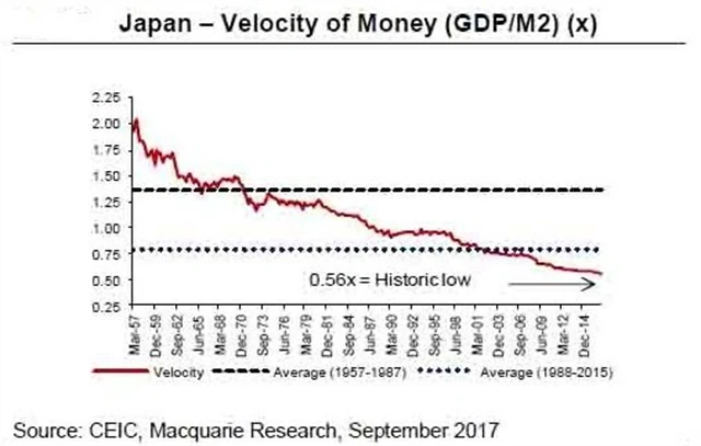Tento přesun probíhal i před rokem 2007, ale finanční krize a zemětřesení v roce 2011 podle Shvetse ještě více utlumily ochotu firem i lidí utrácet. To má neblahý vliv na rychlost obratu peněz, která se v posledních letech přinejlepším stabilizuje.