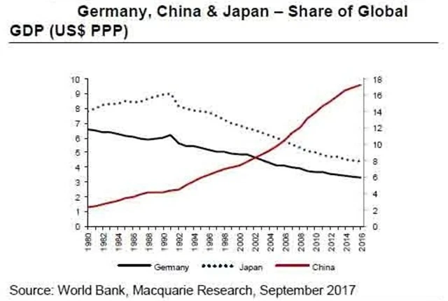 Přestože je Japonsko již jen stínem ekonomiky, která v 80. letech kontrolovala 10 % globálního exportu (dnes méně než 3,8 %), a stejné to je u podílu na světovém HDP, země si dokázala udržet celkovou agregátní poptávku a příjem na obyvatele na vysoké úrovni.