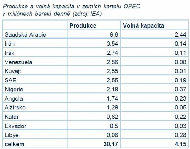 Rezervní kapacita kartelu dosahuje 4 milionů barelů, přičemž 2,44 milionu je v Saúdské Arábii. Íránský produkční výpadek by kartel nedokázal rychle nahradit a několik týdnů by ropa na globálním trhu chyběla. Taktéž by mohla být omezena doprava v průlivu Hormuz, přes který se převáží 40 % celosvětové námořní dopravy ropy.
