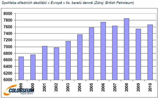 Podle údajů BP se v roce 2010 spotřebovalo v Evropě 7,7 milionu barelů středních destilátů, což je o 1,6 % více oproti předchozímu roku. Poptávka po naftě a topných olejích dlouhodobě roste. Maximum spotřeby bylo dosaženo v roce 2008. V roce 2009 nastal kvůli ekonomické nejistotě pokles poptávky na pětileté minimum. V nejbližších letech se předpokládá obnovení růstu poptávky.