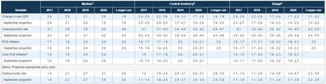 Celková míra nezaměstnanosti podle Fedu bude na konci letošního roku činit 3,9 %, kde by měla setrvat i v roce 2019, v roce 2020 by pak celková míra nezaměstnanosti měla podle banky stoupnout na 4 %. PCE inflace by letos měla dosáhnout 1,9 %, v letech 2019 a 2020 by měla dosahovat úrovně 2 %.