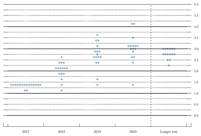 FOMC - dot plot (prosinec 2017), zdroj: Fed