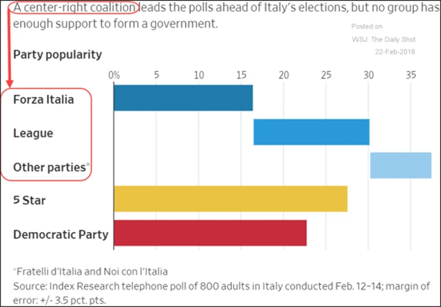 Analytici se shodují, že vítěz italských voleb, které se konají 4. března, není jasný. Důvodem je nový volební systém. Nerozhodný stav v parlamentu pravděpodobně vyústí v nutnost širších koaličních jednání. Pravděpodobnost výsledku, který by byl pro trh nejpříznivější, tedy koalice Demokratické strany a Forza Italia, případně vítězství středolevého politického křídla, je nízká.