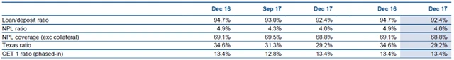 Kapitálová přiměřenost CET1 na konci loňského roku dosahovala 13,4 %, proti konci roku 2016 se tedy ukazatel nezměnil. Celková kapitálová přiměřenost zůstala rovněž beze změny na 18,5 %.