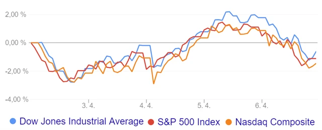 Americké akciové indexy v týdnu do 6. dubna 2018, zdroj: Google