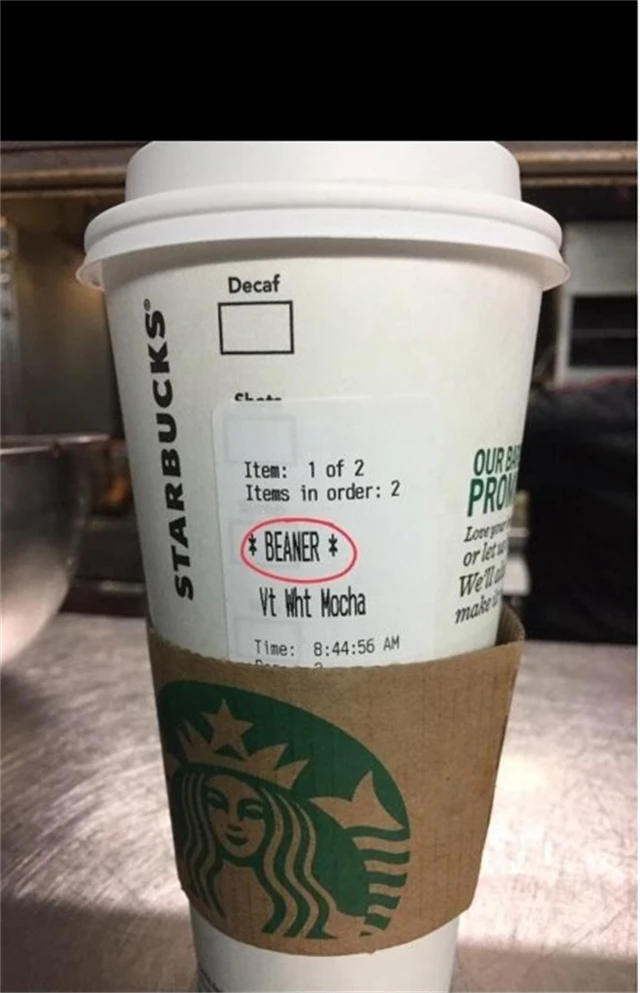 Protože kelímek obdržel Hispánec, byl oheň na střeše. Beaner je totiž pejorativní označení pro Mexičany. Řetězec se muži květnatě omluvil. Shodou okolností servírka, která objednávku vyřizovala, je stejně tak hispánského původu a údajně přísahala, že zákazník uvedl zlořečené slovo jako to, které chce na kelímku mít.