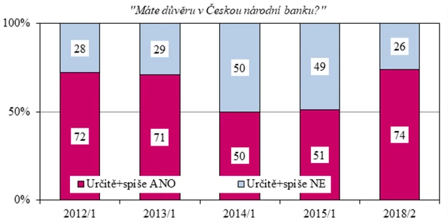 Agentura STEM v průzkumu veřejného mínění konaném počátkem února zjistila, že se míra důvěry veřejnosti v Českou národní banku výrazně zvýšila. Vrátila se tak na úrovně z doby před zahájením měnových intervencí, které trvaly od listopadu 2013 do dubna 2017, všímá si ekonom z České spořitelny Michal Skořepa.