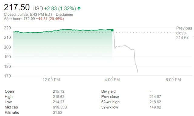 Firma svými výsledky zaostala za odhady analytiků. Zisk na akcii dosáhl 1,74 USD, čekalo se o cent více. Tržby 13,23 miliardy USD zaostaly za odhadovanými 13,43 miliardy USD.