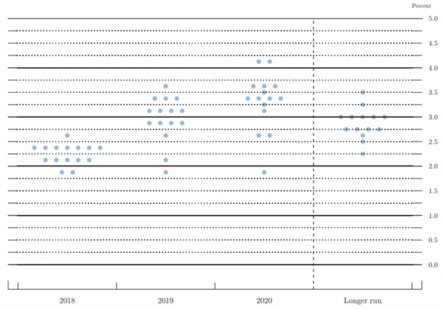 Pokud Fed do konce roku sazby skutečně zvýší ještě dvakrát, celkem je letos zvedne čtyřikrát. Dříve banka počítala jen se třemi zvýšeními. V příštím roce centrální bankéři nadále plánují zvýšit sazby třikrát. Od prosince 2015 již bankéři zvýšili úroky sedmkrát.