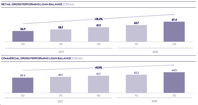 Bilance hrubých retailových úvěrů se meziročně zvýšila z 56,9 miliardy Kč na 67,4 miliardy Kč (+18,4 %), mimo jiné díky růstu hypotečních úvěrů ze 17,5 miliardy Kč na 24,9 miliardy Kč (+42,3 %). Bilance hrubých úvěrů poskytnutých podnikům se meziročně zvýšila z 59,4 miliardy Kč na 64,5 miliardy Kč, z toho objem úvěrů pro malé firmy se zvýšil z 2,2 miliardy Kč na 3,7 miliardy Kč (+67,8 %).