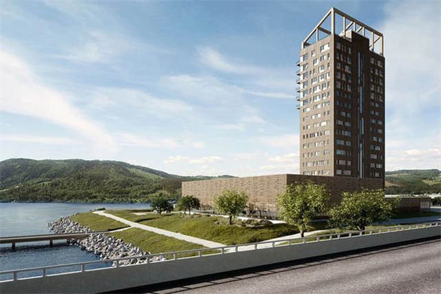 Nejvyšší dřevostavba světa vzniká asi 100 kilometrů severně od norské metropole Osla a nese název Mjös podle rozlehlého jezera Mjösa, na jehož břehu stojí. Osmnáctipatrová budova má po svém otevření, které je plánováno na březen příštího roku, zahrnovat kromě bytů také krytý bazén, hotel, kanceláře či restauraci.