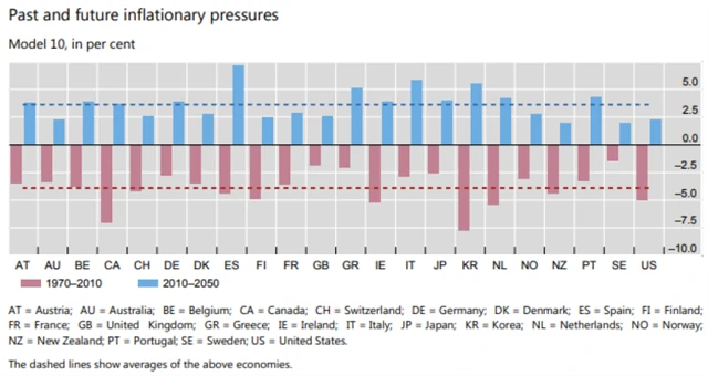 V BIS si všimli, že mnoho zemí vykazuje nízkou inflaci a zároveň stárnutí populace, které je spojeno s poklesem pracovní síly a růstem podílu takzvaných důchodců v populaci. A položili si otázku, zda jsou tyto dva jevy nějak spojené.