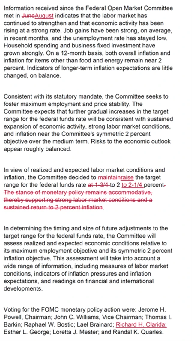 Změny v prohlášení FOMC po zasedání 26. září 2018