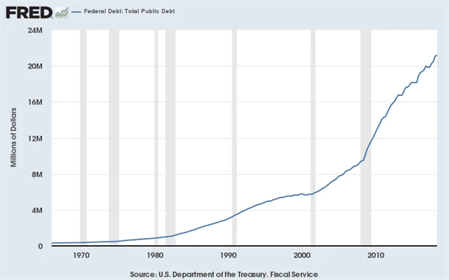 A možná ještě hůře je na tom vláda USA. Celkový dluh země letos v prvním pololetí poprvé vzrostl nad 21 bilionů dolarů.