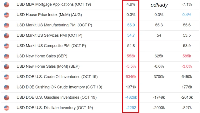 Americká makrodata (24. října 2018), zdroj: DailyFX.com