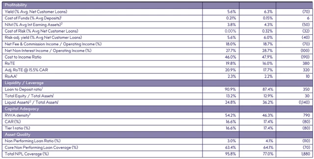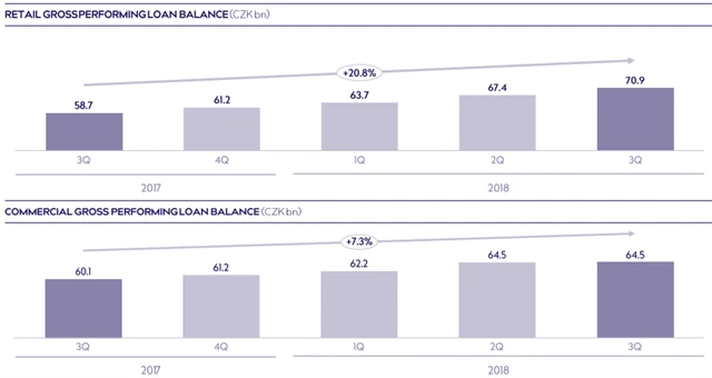 Bilance hrubých retailových úvěrů se meziročně zvýšila z 58,7 miliardy Kč na 70,9 miliardy Kč (+20,8 %), mimo jiné díky růstu hypotečních úvěrů z 18,6 miliardy Kč na 28 miliard Kč (+50,7 %). Bilance hrubých úvěrů poskytnutých podnikům se meziročně zvýšila z 60,1 miliardy Kč na 64,5 miliardy Kč, z toho objem úvěrů pro malé firmy se zvýšil z 2,4 miliardy Kč na 4 miliardy Kč (+65,3 %).