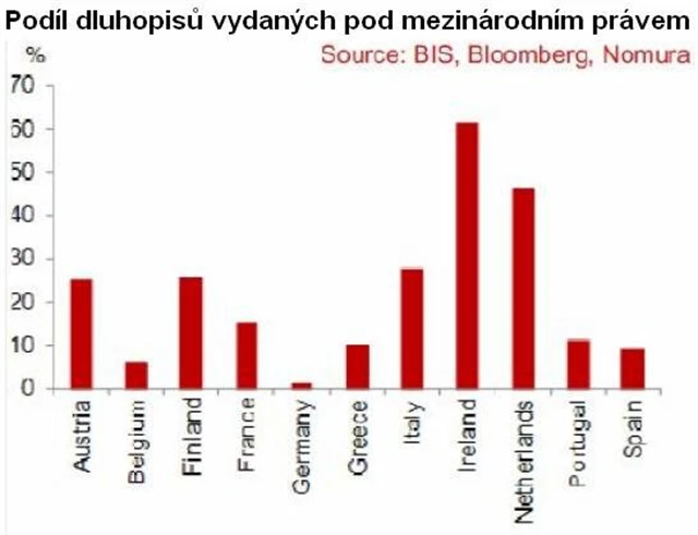 Méně než 20% dluhopisů vydaných pod mezinárodním právem mají Belgie, Francie, Německo, ale i Řecko, Portugalsko nebo Španělsko. Tyto země by tedy mohly velkou část svých dluhů změnit na dluhy ve svých národních měnách. Možné to tedy je.