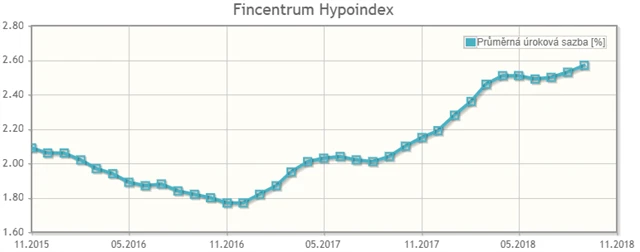 Vývoj sazeb hypoték (Fincentrum Hypoindex)