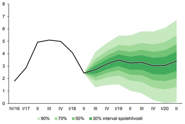 V listopadové prognóze ČNB zhoršila odhad růstu tuzemské ekonomiky v letošním roce na 3,1 % a v příštím roce na 3,3 %. V srpnové prognóze počítala letos ČNB s růstem ekonomiky o 3,2 % a v příštím roce o 3,4 %.