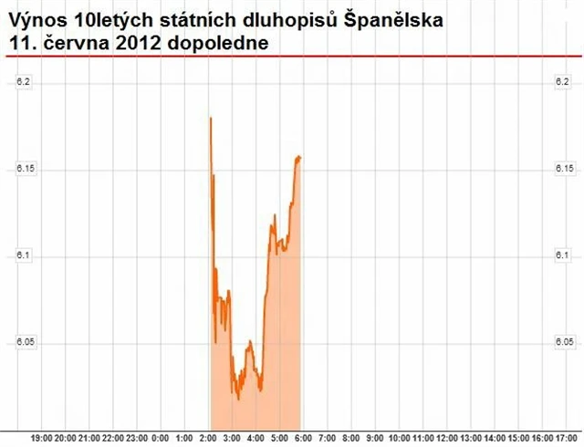 Španělské dluhopisy dopoledne také mírně posílily, ovšem velice rychle se jejich výnosy vrátily nahoru k hodnotám, kde v pátek (po snížení ratingu Španělska, mimochodem) uzavíraly.