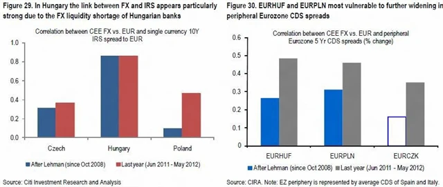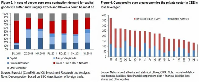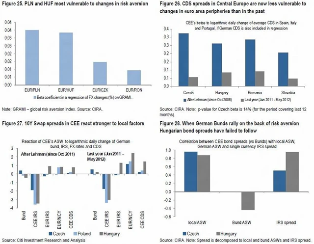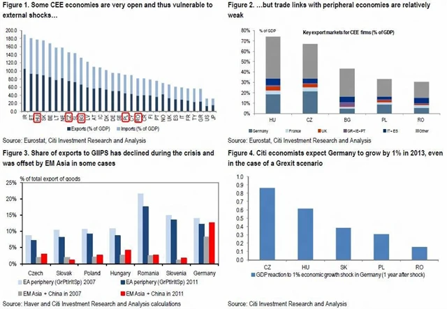 Přímé ekonomické a obchodní vazby mezi střední Evropou a periferií eurozóny jsou slabé, snad s výjimkou Bulharska a Rumunska. Růst regionu je mnohem více závislý na výkonu Německa než Řecka nebo jiných krizí zasažených ekonomik. Hlavní kanály potenciální nákazy pro střední a východní Evropu tedy pramení buď z bankovního systému, nebo z odlivu portfoliových investic.