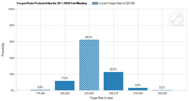 Odhad výše sazeb Fedu po zasedání v lednu 2020, zdroj: CME Group