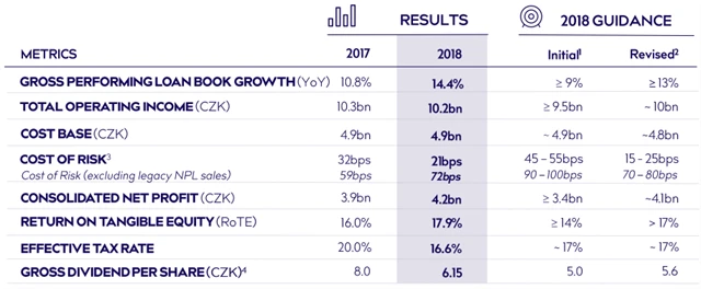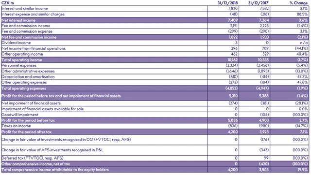 Společnost má nadále silnou kapitálovou pozici, poměr Tier 1 dosahoval na konci čtvrtého čtvrtletí 16,4 %, na konci roku 2017 byl na úrovni 17,4 %. Poměr úvěrů ke vkladům dosahoval na konci loňského roku 83 %, na konci roku 2017 byl 87,4 %.
