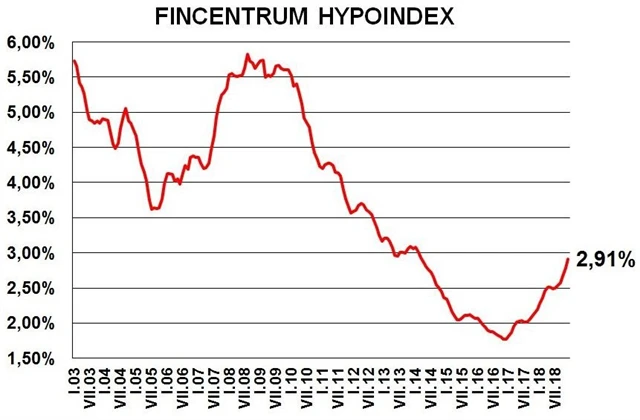 Vývoj sazeb hypoték (Fincentrum Hypoindex)