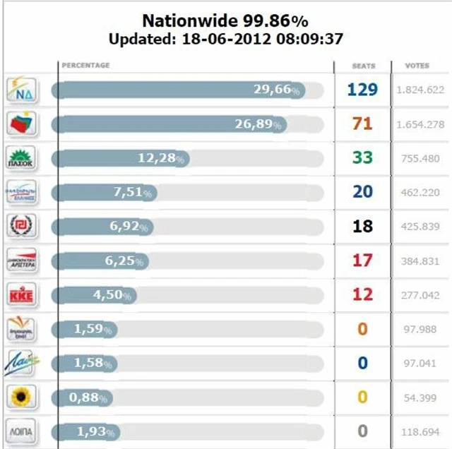 Nová demokracie by totiž neměla mít problém sestavit koalici se stranou PASOK Evangelose Venizelose. Otázkou ovšem zůstává, co na výsledky voleb a případné sestavení "proevropské" koalice řeknou příznivci radikálně levicové Syrizy. Líbit se jim to nebude. A je jich téměř 30 %.