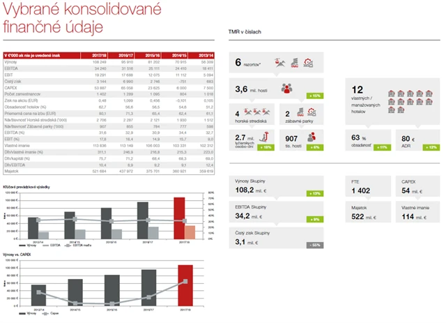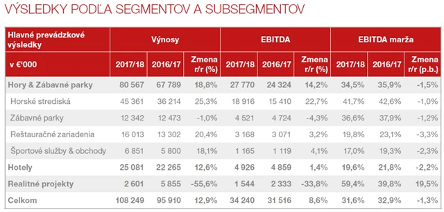 "Díky ideálním sněhovým podmínkám byla zima 2017/2018 opět velmi silná, což se odrazilo ve vyšší návštěvnosti horských středisek a celkovém růstu konsolidovaných výnosů, které za uplynulý rok dosáhly rekordní úrovně 108 milionů eur. Provozní zisk skupiny před odpisy (EBITDA) dosáhl 34,2 milionu eur. Zejména kvůli vyšším mzdovým nákladům se však navzdory růstu tržeb provozní efektivita skupiny měřená EBITDA marží mírně zhoršila na 31,6 %. Kvůli vyšším odpisům a nákladům na financování se konsolidovaný čistý zisk snížil o 58 %," uvedl ve výsledkové zprávě výkonný ředitel společnosti Bohuš Hlavatý.