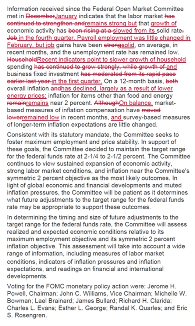 FOMC - změny v prohlášení po zasedání v březnu 2019