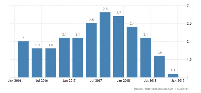 V případě eurozóny nečekáme zvýšení sazeb ECB před prvním čtvrtletím 2021 s rizikem, že během současného hospodářského cyklu ke zvýšení sazeb nedojde vůbec. Stále čekáme oživení růstu HDP eurozóny ve druhé polovině roku 2019, což by mělo ponechat náš výhled růstu jejího HDP v roce 2019 o 1 % následovaného +1,5 % v roce 2020.