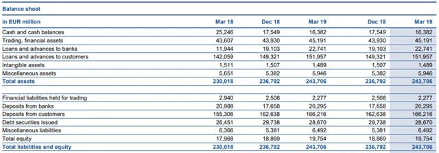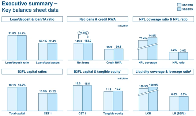 Vzrostl objem úvěrů i vkladů klientů. Úvěry poskytnuté klientům vzrostly ze 142,06 miliardy eur na 151,96 miliardy eur. Vklady klientů se zvýšily ze 155,31 miliardy eur na 166,22 miliardy eur.