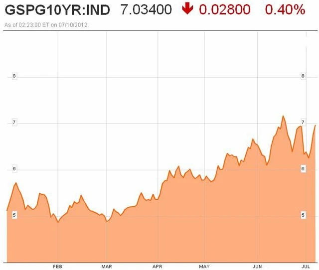 Evropa, a především Španělsko nemají na co čekat - výnosy dluhopisů krátce po slibném summitu EU opět začaly nebezpečně růst a Španělsko přiznalo, že 7% úroky nemůže zvládat vyplácet dlouho. Analytici odhadují, že pokud by bylo nutné zachraňovat celou španělskou ekonomiku, nejen banky, znamenalo by to pro evropské záchranné fondy zátěž ve stovkách miliard eur.