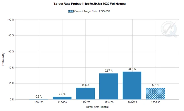 Pravděpodobnost výše základní sazby Fedu na konci ledna 2020