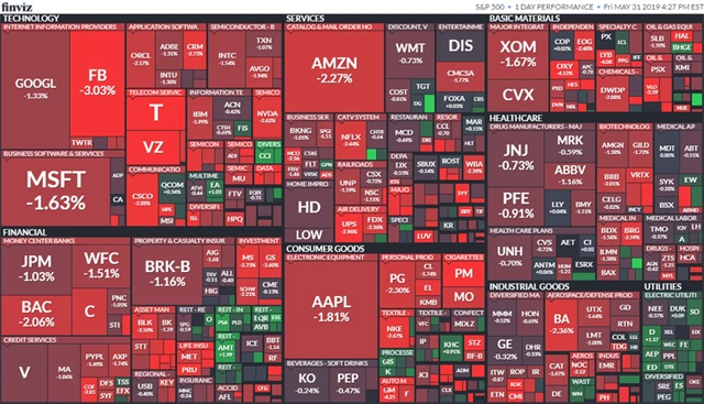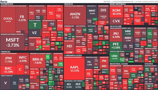 Za celý květen vykázaly všechny tři hlavní indexy první měsíční pokles v tomto roce. Dow odepsal 6,69 %, S&P 500 klesl o 6,58 % a Nasdaq Composite přišel o 7,93 %. Index S&P 500 pak má za sebou nejhorší květen od roku 2010.
