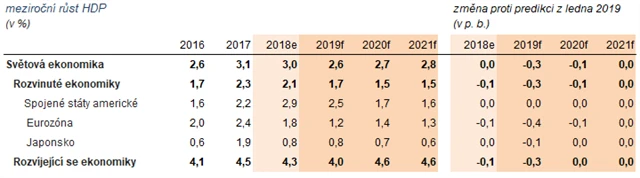 "Globální ekonomická aktivita začátkem roku 2019 dále ochabovala, známky zřetelné slabosti vykazovaly obchod a zpracovatelský průmysl," uvedla banka. "Zvýšenou politickou nejistotu, včetně nedávné eskalace obchodního napětí mezi předními ekonomikami, provázelo zpomalování globálních investic a pokles důvěry."