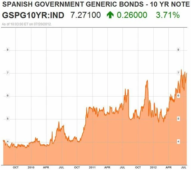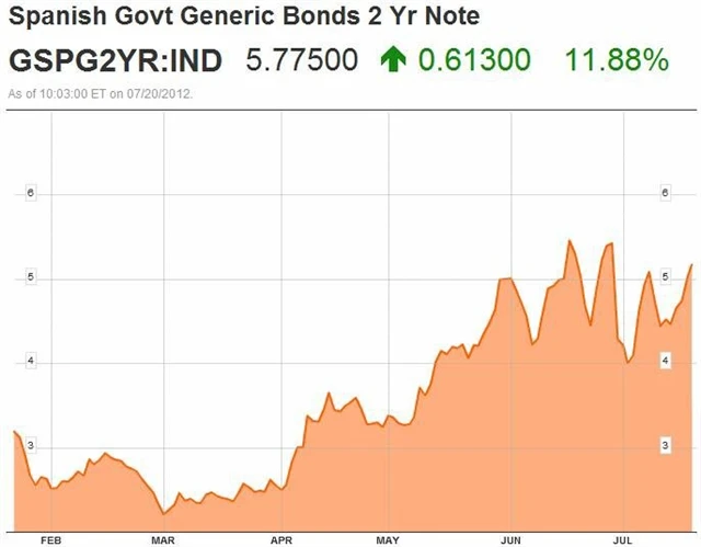 Na španělské žádosti o pomoc bankovnímu sektoru je všech 17 podpisů ministrů financí zemí eurozóny. Dobrá, ale očekávaná zpráva. Nepříjemným překvapením je ovšem kratší doba splatnosti půjček na 12,5 roku v průměru, čekalo se až 30 let. Španělsko navíc nově počítá s poklesem ekonomiky v roce 2013 a s dalším růstem nezaměstnanosti. Investory do španělských dluhopisů během dne nejvíce vystrašily informace o tom, že region Valencie žádá o pomoc z fondů regionální pomoci.
