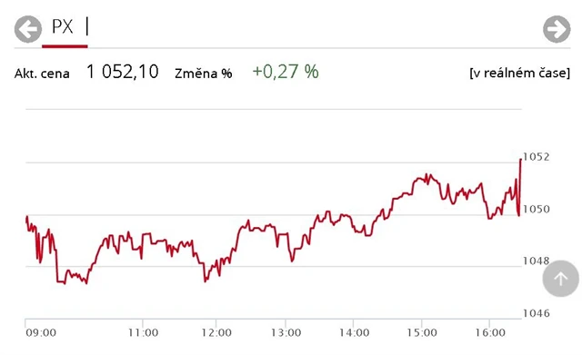 Pražská burza si ve čtvrtek připsala 0,27 % díky vzestupu rakouských finančních titulů, za týden index PX přidal procento